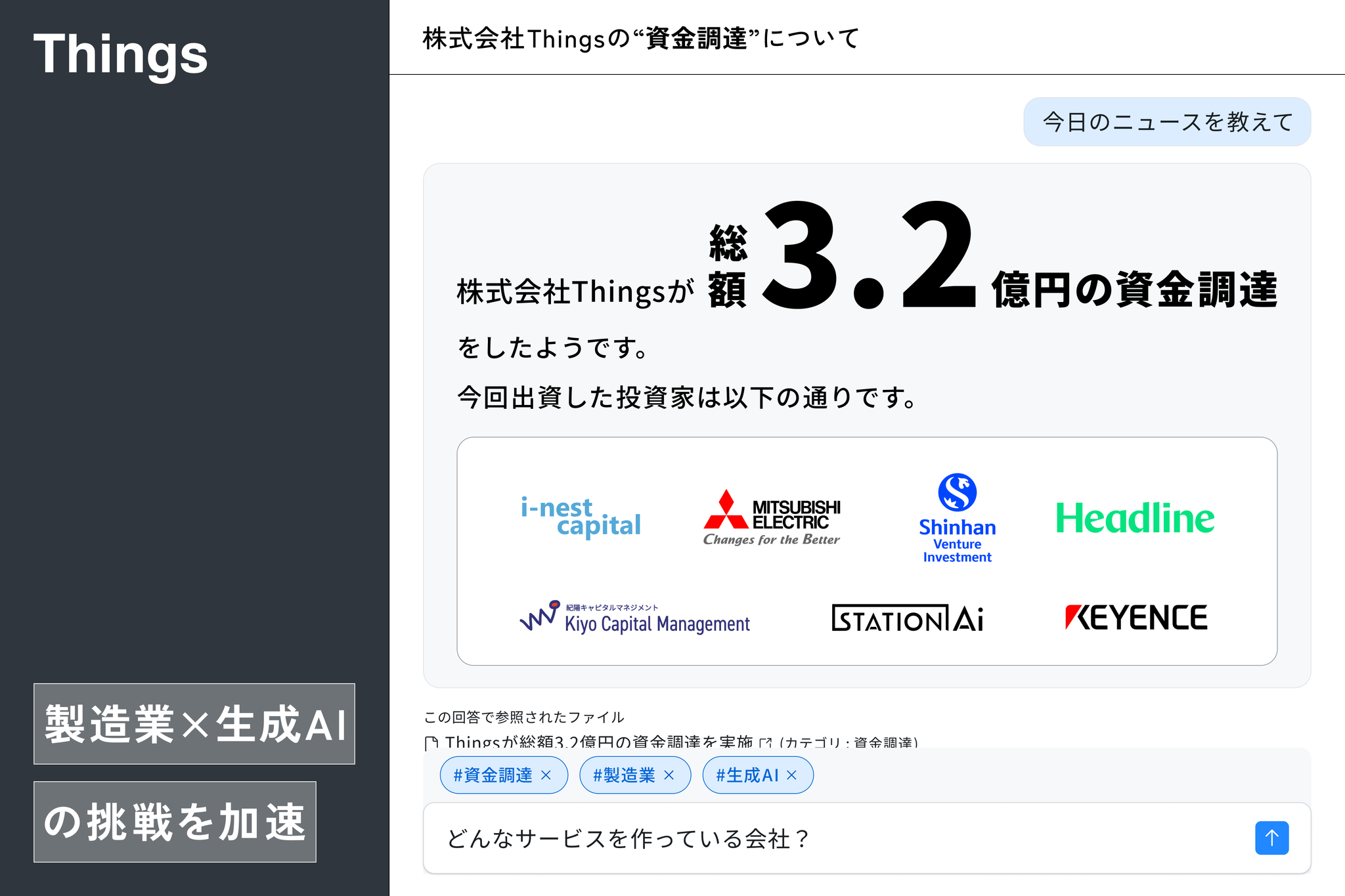 私たちはこの環境変化を大きな機会と捉え、プロダクト開発の加速と事業拡大に耐えうる強固な組織体制の構築を目的に資金調達を実施。エンジニアに加え、セールスやカスタマーサクセス(CS)を含む組織全体の基盤を強化し、生成AIを活用した技術情報の掘り起こしと活用をより多くの現場で支援してまいります。なお今回のリリースにあわせ、サービスページを一部リニューアルしましたので、ぜひご覧ください。